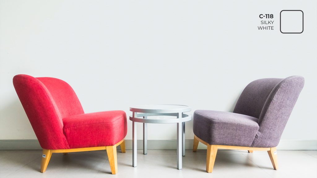 C-118 Silky White menghadirkan nuansa bersih dan lembut yang membuat ruangan terasa lebih luas. Warna putih yang netral ini ideal untuk kalian yang menginginkan rumah dengan tampilan minimalis sekaligus elegan. C-118 Silky White dapat dengan mudah memantulkan cahaya alami, menciptakan atmosfer ruangan yang terang dan menyegarkan.