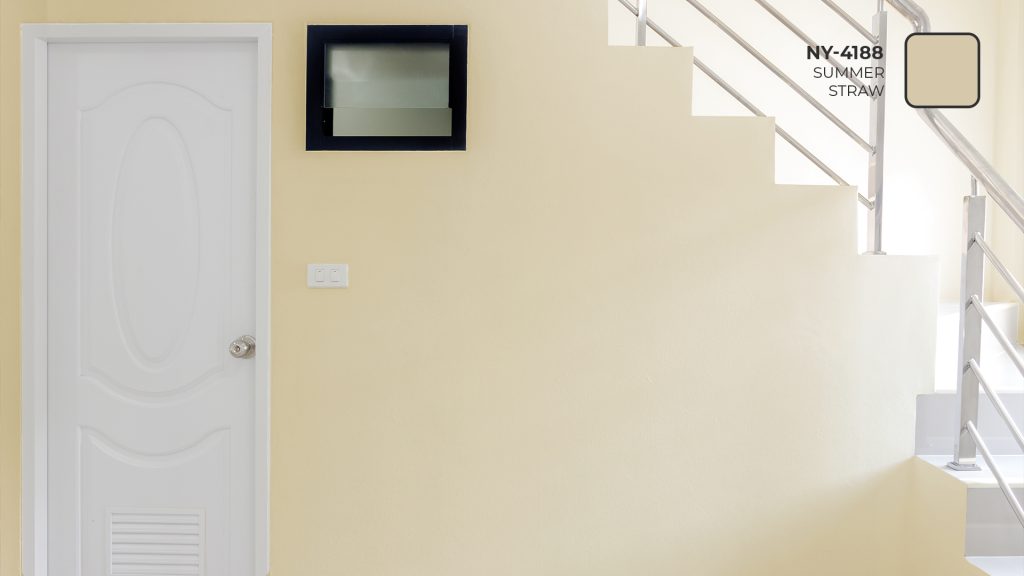 NY-4188 Summer Straw juga dapat membuat ruangan terasa lebih hidup tanpa tampil terlalu mencolok. Warna ini cocok dikombinasikan dengan dekorasi natural, seperti tanaman hias, anyaman rotan, atau aksen kayu terang. Cocok untuk kamu yang mencari warna cat interior netral dengan kesan hangat dan timeless.